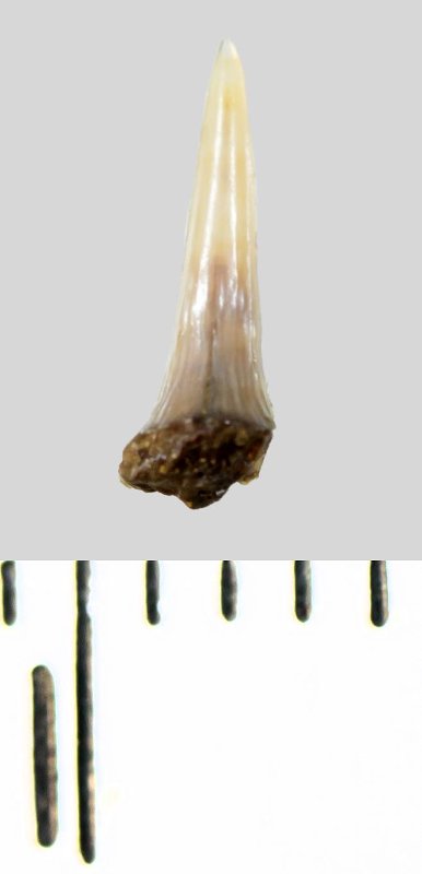 Зуб (фрагмент). Акула. Lamniformes gen. et sp. indet. Классификация: Хордовые Chordata, Позвоночные Vertebrata, Хрящевые рыбы Chondrichthyes, Пластиножаберные Elasmobranchii, Акулы Selachii, Ламнообразные Lamniformes