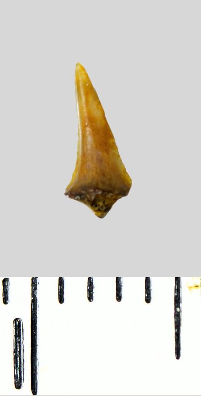 Зуб (фрагмент). Акула. Lamniformes gen. et sp. indet. Классификация: Хордовые Chordata, Позвоночные Vertebrata, Хрящевые рыбы Chondrichthyes, Пластиножаберные Elasmobranchii, Акулы Selachii, Ламнообразные Lamniformes