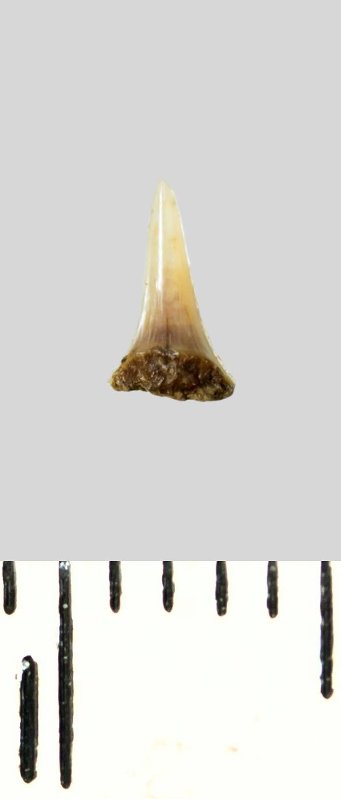 Зуб (фрагмент). Акула. Lamniformes gen. et sp. indet. Классификация: Хордовые Chordata, Позвоночные Vertebrata, Хрящевые рыбы Chondrichthyes, Пластиножаберные Elasmobranchii, Акулы Selachii, Ламнообразные Lamniformes