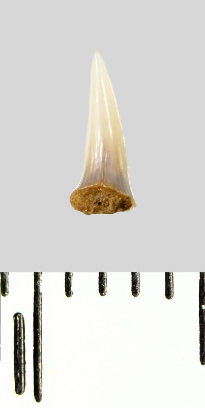 Зуб (фрагмент). Акула. Lamniformes gen. et sp. indet. Классификация: Хордовые Chordata, Позвоночные Vertebrata, Хрящевые рыбы Chondrichthyes, Пластиножаберные Elasmobranchii, Акулы Selachii, Ламнообразные Lamniformes