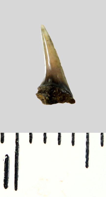 Зуб (фрагмент). Акула. Lamniformes gen. et sp. indet. Классификация: Хордовые Chordata, Позвоночные Vertebrata, Хрящевые рыбы Chondrichthyes, Пластиножаберные Elasmobranchii, Акулы Selachii, Ламнообразные Lamniformes