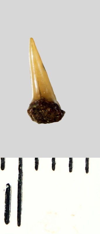 Зуб (фрагмент). Акула. Lamniformes gen. et sp. indet. Классификация: Хордовые Chordata, Позвоночные Vertebrata, Хрящевые рыбы Chondrichthyes, Пластиножаберные Elasmobranchii, Акулы Selachii, Ламнообразные Lamniformes