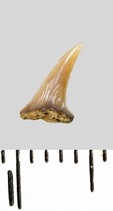 Зуб (фрагмент). Акула. Lamniformes gen. et sp. indet. Классификация: Хордовые Chordata, Позвоночные Vertebrata, Хрящевые рыбы Chondrichthyes, Пластиножаберные Elasmobranchii, Акулы Selachii, Ламнообразные Lamniformes