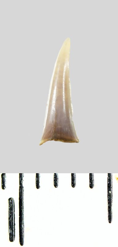 Зуб (фрагмент). Акула. Lamniformes gen. et sp. indet. Классификация: Хордовые Chordata, Позвоночные Vertebrata, Хрящевые рыбы Chondrichthyes, Пластиножаберные Elasmobranchii, Акулы Selachii, Ламнообразные Lamniformes