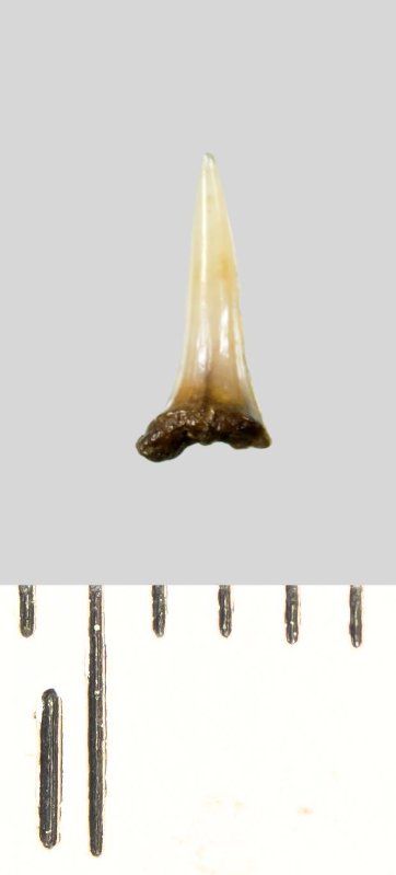 Зуб (фрагмент). Акула. Lamniformes gen. et sp. indet. Классификация: Хордовые Chordata, Позвоночные Vertebrata, Хрящевые рыбы Chondrichthyes, Пластиножаберные Elasmobranchii, Акулы Selachii, Ламнообразные Lamniformes