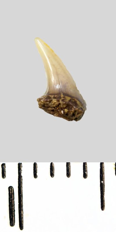 Зуб (фрагмент). Акула. Lamniformes gen. et sp. indet. Классификация: Хордовые Chordata, Позвоночные Vertebrata, Хрящевые рыбы Chondrichthyes, Пластиножаберные Elasmobranchii, Акулы Selachii, Ламнообразные Lamniformes