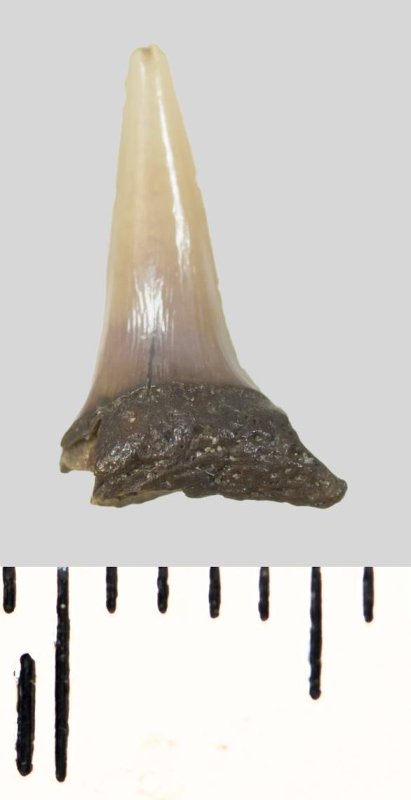 Зуб (фрагмент). Акула. Lamniformes gen. et sp. indet. Классификация: Хордовые Chordata, Позвоночные Vertebrata, Хрящевые рыбы Chondrichthyes, Пластиножаберные Elasmobranchii, Акулы Selachii, Ламнообразные Lamniformes