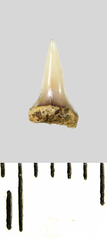 Зуб (фрагмент). Акула. Lamniformes gen. et sp. indet. Классификация: Хордовые Chordata, Позвоночные Vertebrata, Хрящевые рыбы Chondrichthyes, Пластиножаберные Elasmobranchii, Акулы Selachii, Ламнообразные Lamniformes