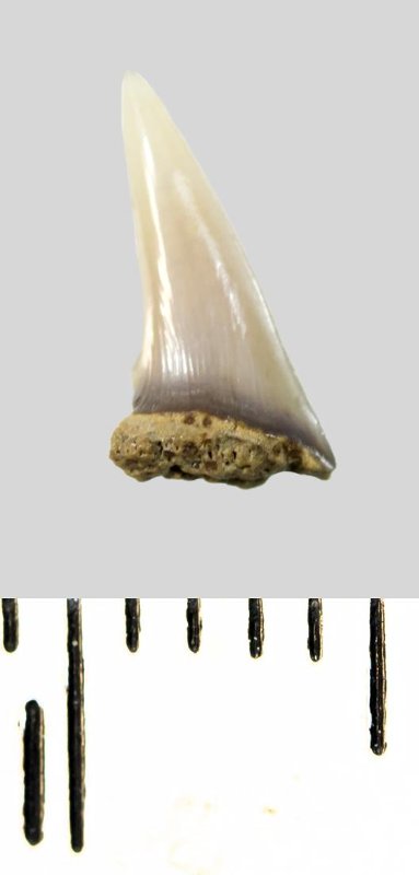 Зуб (фрагмент). Акула. Lamniformes gen. et sp. indet. Классификация: Хордовые Chordata, Позвоночные Vertebrata, Хрящевые рыбы Chondrichthyes, Пластиножаберные Elasmobranchii, Акулы Selachii, Ламнообразные Lamniformes