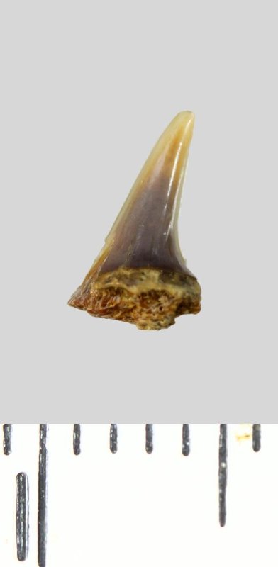 Зуб (фрагмент). Акула. Lamniformes gen. et sp. indet. Классификация: Хордовые Chordata, Позвоночные Vertebrata, Хрящевые рыбы Chondrichthyes, Пластиножаберные Elasmobranchii, Акулы Selachii, Ламнообразные Lamniformes