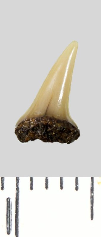 Зуб (фрагмент). Акула. Lamniformes gen. et sp. indet. Классификация: Хордовые Chordata, Позвоночные Vertebrata, Хрящевые рыбы Chondrichthyes, Пластиножаберные Elasmobranchii, Акулы Selachii, Ламнообразные Lamniformes