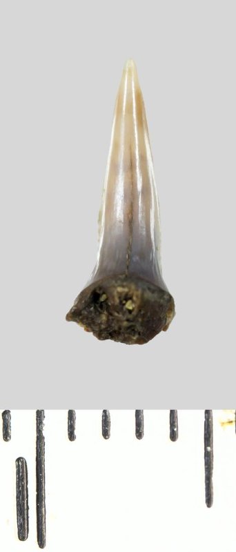 Зуб (фрагмент). Акула. Lamniformes gen. et sp. indet. Классификация: Хордовые Chordata, Позвоночные Vertebrata, Хрящевые рыбы Chondrichthyes, Пластиножаберные Elasmobranchii, Акулы Selachii, Ламнообразные Lamniformes