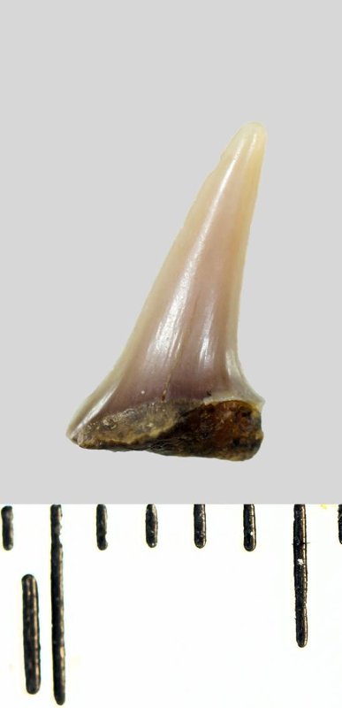 Зуб (фрагмент). Акула. Lamniformes gen. et sp. indet. Классификация: Хордовые Chordata, Позвоночные Vertebrata, Хрящевые рыбы Chondrichthyes, Пластиножаберные Elasmobranchii, Акулы Selachii, Ламнообразные Lamniformes