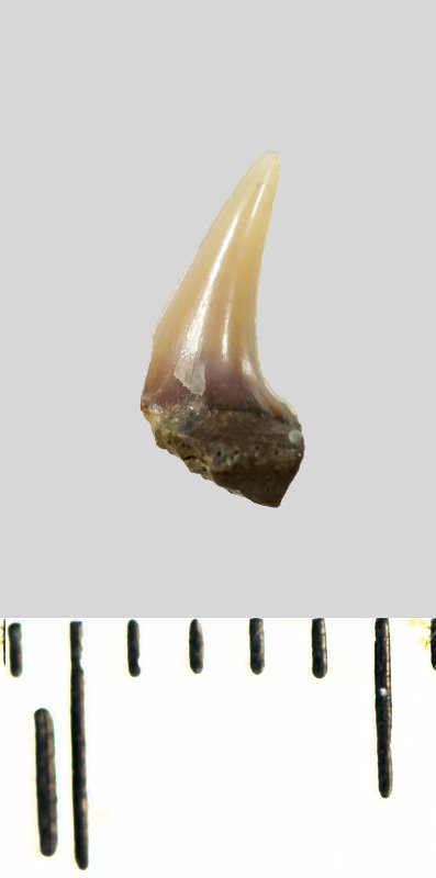 Зуб (фрагмент). Акула. Lamniformes gen. et sp. indet. Классификация: Хордовые Chordata, Позвоночные Vertebrata, Хрящевые рыбы Chondrichthyes, Пластиножаберные Elasmobranchii, Акулы Selachii, Ламнообразные Lamniformes