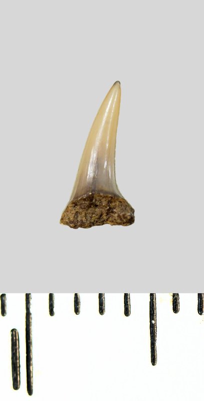 Зуб (фрагмент). Акула. Lamniformes gen. et sp. indet. Классификация: Хордовые Chordata, Позвоночные Vertebrata, Хрящевые рыбы Chondrichthyes, Пластиножаберные Elasmobranchii, Акулы Selachii, Ламнообразные Lamniformes