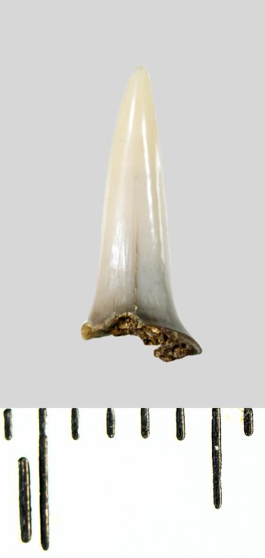 Зуб (фрагмент). Акула. Lamniformes gen. et sp. indet. Классификация: Хордовые Chordata, Позвоночные Vertebrata, Хрящевые рыбы Chondrichthyes, Пластиножаберные Elasmobranchii, Акулы Selachii, Ламнообразные Lamniformes