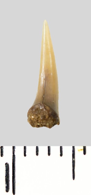 Зуб (фрагмент). Акула. Lamniformes gen. et sp. indet. Классификация: Хордовые Chordata, Позвоночные Vertebrata, Хрящевые рыбы Chondrichthyes, Пластиножаберные Elasmobranchii, Акулы Selachii, Ламнообразные Lamniformes