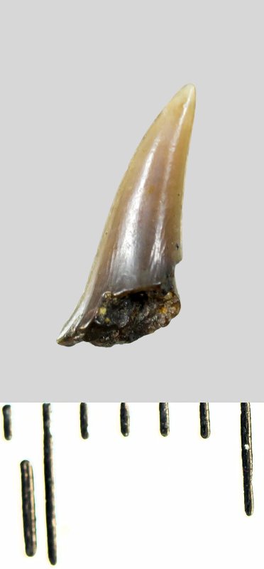 Зуб (фрагмент). Акула. Lamniformes gen. et sp. indet. Классификация: Хордовые Chordata, Позвоночные Vertebrata, Хрящевые рыбы Chondrichthyes, Пластиножаберные Elasmobranchii, Акулы Selachii, Ламнообразные Lamniformes