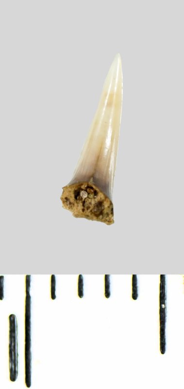 Зуб (фрагмент). Акула. Lamniformes gen. et sp. indet. Классификация: Хордовые Chordata, Позвоночные Vertebrata, Хрящевые рыбы Chondrichthyes, Пластиножаберные Elasmobranchii, Акулы Selachii, Ламнообразные Lamniformes