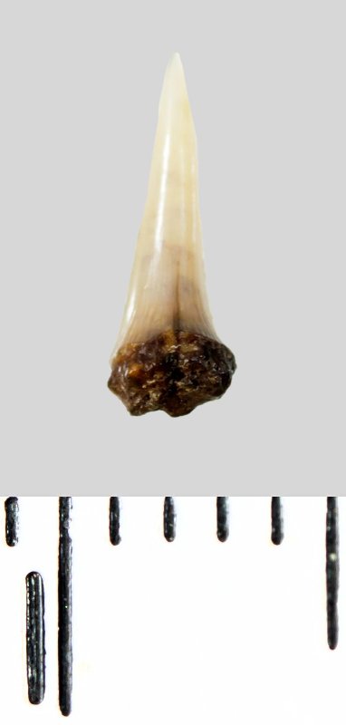 Зуб (фрагмент). Акула. Lamniformes gen. et sp. indet. Классификация: Хордовые Chordata, Позвоночные Vertebrata, Хрящевые рыбы Chondrichthyes, Пластиножаберные Elasmobranchii, Акулы Selachii, Ламнообразные Lamniformes