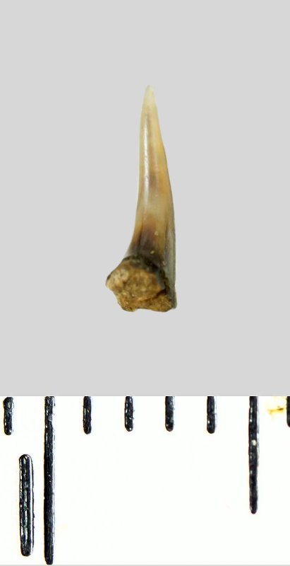 Зуб (фрагмент). Акула. Lamniformes gen. et sp. indet. Классификация: Хордовые Chordata, Позвоночные Vertebrata, Хрящевые рыбы Chondrichthyes, Пластиножаберные Elasmobranchii, Акулы Selachii, Ламнообразные Lamniformes