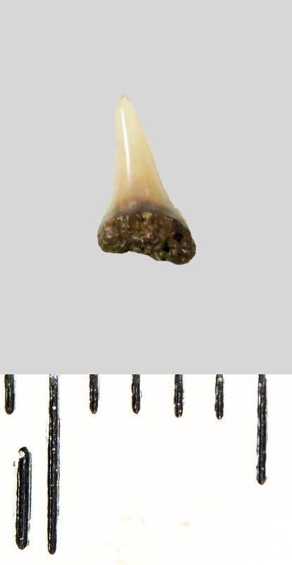 Зуб (фрагмент). Акула. Lamniformes gen. et sp. indet. Классификация: Хордовые Chordata, Позвоночные Vertebrata, Хрящевые рыбы Chondrichthyes, Пластиножаберные Elasmobranchii, Акулы Selachii, Ламнообразные Lamniformes