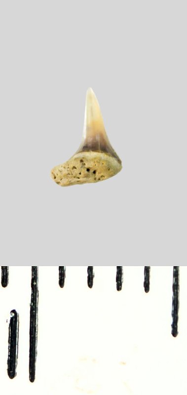 Зуб (фрагмент). Акула. Lamniformes gen. et sp. indet. Классификация: Хордовые Chordata, Позвоночные Vertebrata, Хрящевые рыбы Chondrichthyes, Пластиножаберные Elasmobranchii, Акулы Selachii, Ламнообразные Lamniformes
