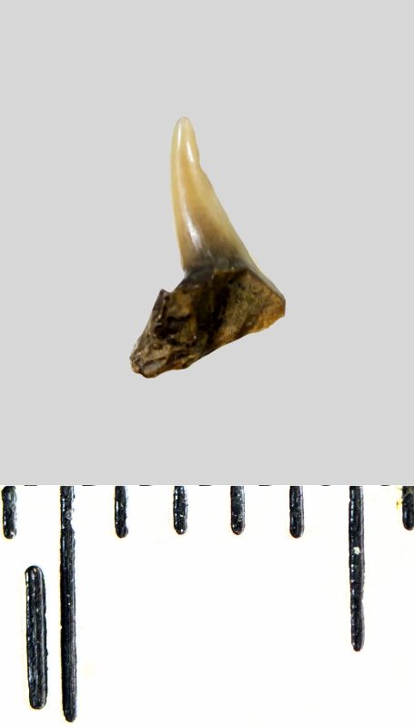 Зуб (фрагмент). Акула. Lamniformes gen. et sp. indet. Классификация: Хордовые Chordata, Позвоночные Vertebrata, Хрящевые рыбы Chondrichthyes, Пластиножаберные Elasmobranchii, Акулы Selachii, Ламнообразные Lamniformes