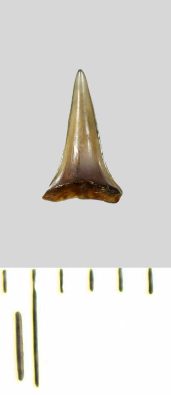 Зуб (фрагмент). Акула. Lamniformes gen. et sp. indet. Классификация: Хордовые Chordata, Позвоночные Vertebrata, Хрящевые рыбы Chondrichthyes, Пластиножаберные Elasmobranchii, Акулы Selachii, Ламнообразные Lamniformes