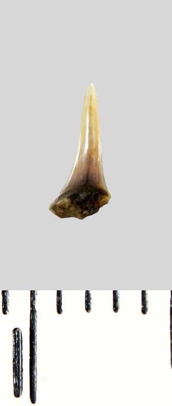 Зуб (фрагмент). Акула. Lamniformes gen. et sp. indet. Классификация: Хордовые Chordata, Позвоночные Vertebrata, Хрящевые рыбы Chondrichthyes, Пластиножаберные Elasmobranchii, Акулы Selachii, Ламнообразные Lamniformes