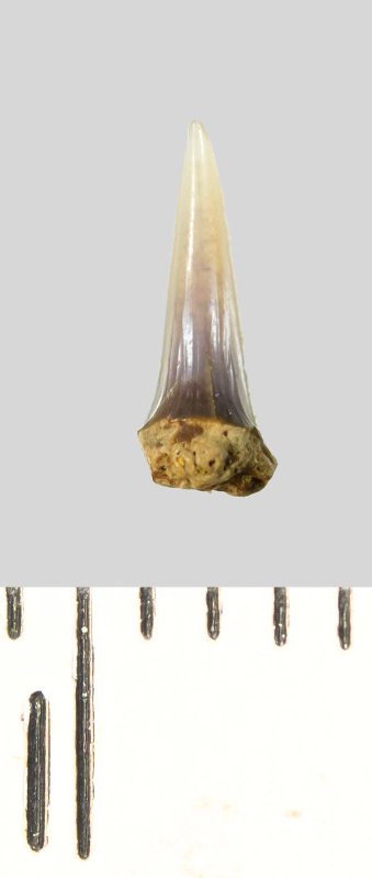 Зуб (фрагмент). Акула. Lamniformes gen. et sp. indet. Классификация: Хордовые Chordata, Позвоночные Vertebrata, Хрящевые рыбы Chondrichthyes, Пластиножаберные Elasmobranchii, Акулы Selachii, Ламнообразные Lamniformes