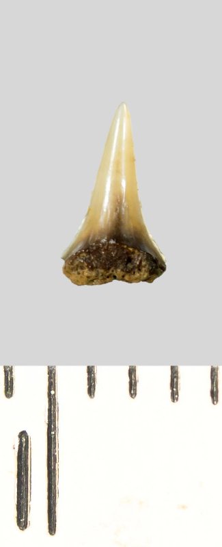 Зуб (фрагмент). Акула. Lamniformes gen. et sp. indet. Классификация: Хордовые Chordata, Позвоночные Vertebrata, Хрящевые рыбы Chondrichthyes, Пластиножаберные Elasmobranchii, Акулы Selachii, Ламнообразные Lamniformes