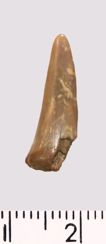 Зуб (фрагмент). Акула. Scapanorhynchus ex gr. gigas Woodward 1889. Классификация: Хордовые Chordata, Позвоночные Vertebrata, Хрящевые рыбы Chondrichthyes, Пластиножаберные Elasmobranchii