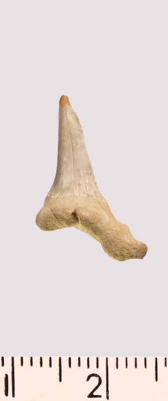 Зуб. Акула. Scapanorhynchus rapax Quaas, 1902. Классификация: Хордовые Chordata, Позвоночные Vertebrata, Хрящевые рыбы Chondrichthyes, Пластиножаберные Elasmobranchii