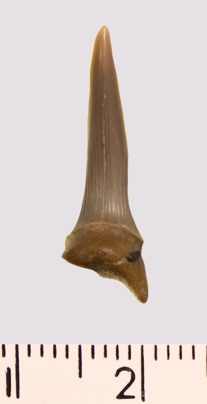 Зуб. Акула. Scapanorhynchus rapax Quaas, 1902. Классификация: Хордовые Chordata, Позвоночные Vertebrata, Хрящевые рыбы Chondrichthyes, Пластиножаберные Elasmobranchii