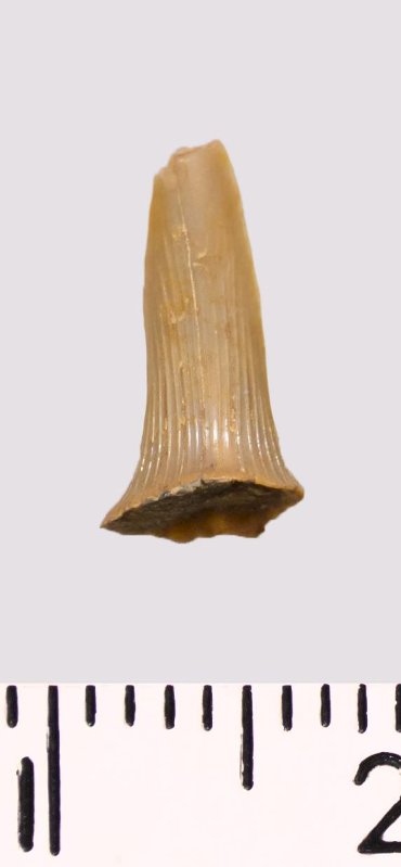 Зуб (фрагмент). Акула. Scapanorhynchus sp. Классификация: Хордовые Chordata, Позвоночные Vertebrata, Хрящевые рыбы Chondrichthyes, Пластиножаберные Elasmobranchii