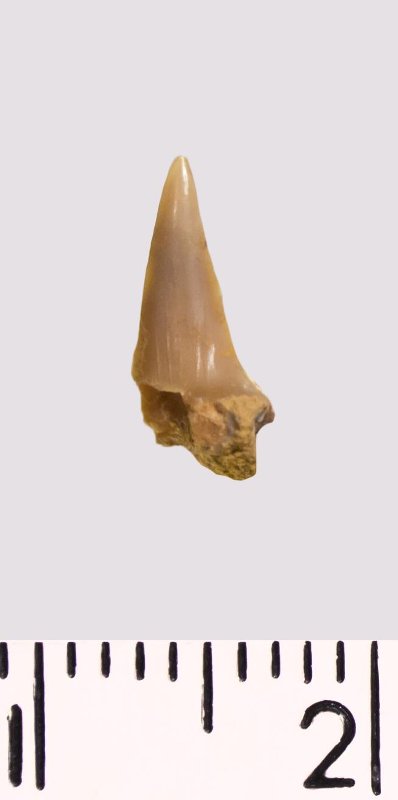 Зуб (фрагмент). Акула. Scapanorhynchus sp. Классификация: Хордовые Chordata, Позвоночные Vertebrata, Хрящевые рыбы Chondrichthyes, Пластиножаберные Elasmobranchii