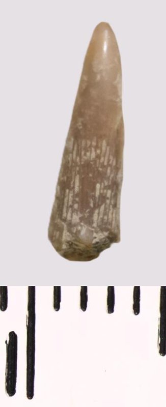 Зуб (фрагмент). Акула. Scapanorhynchus sp. Классификация: Хордовые Chordata, Позвоночные Vertebrata, Хрящевые рыбы Chondrichthyes, Пластиножаберные Elasmobranchii