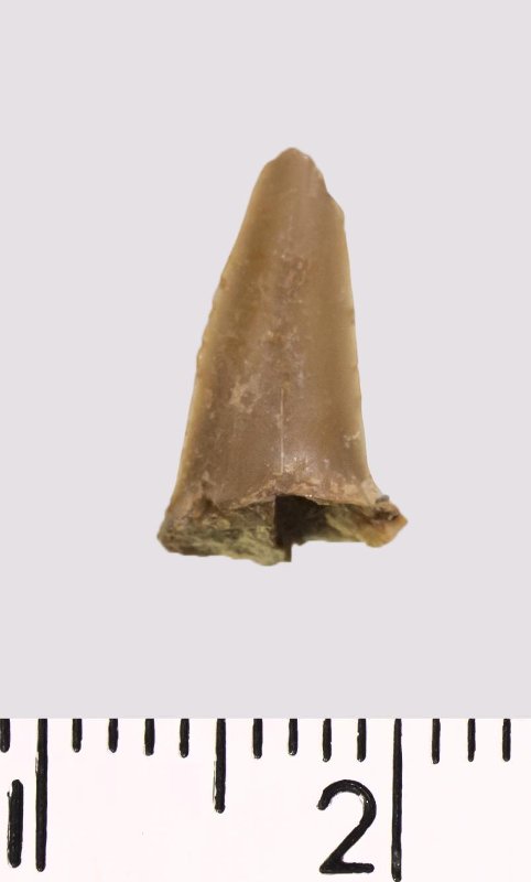 Зуб (фрагмент). Акула. Cretolamna sp. Классификация: Хордовые Chordata, Позвоночные Vertebrata, Хрящевые рыбы Chondrichthyes, Пластиножаберные Elasmobranchii