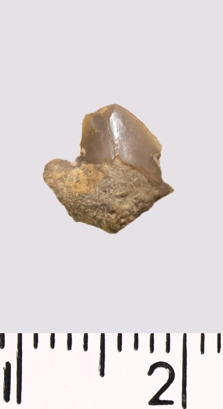 Зуб (фрагмент). Акула. Squalicorax sp. Классификация: Хордовые Chordata, Позвоночные Vertebrata, Хрящевые рыбы Chondrichthyes, Пластиножаберные Elasmobranchii
