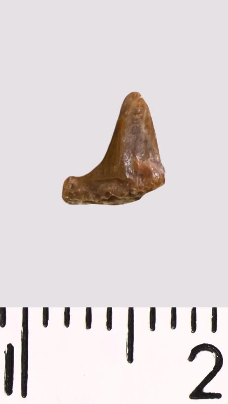 Зуб (фрагмент). Акула. Hybodus sp. Классификация: Хордовые Chordata, Позвоночные Vertebrata, Хрящевые рыбы Chondrichthyes, Пластиножаберные Elasmobranchii