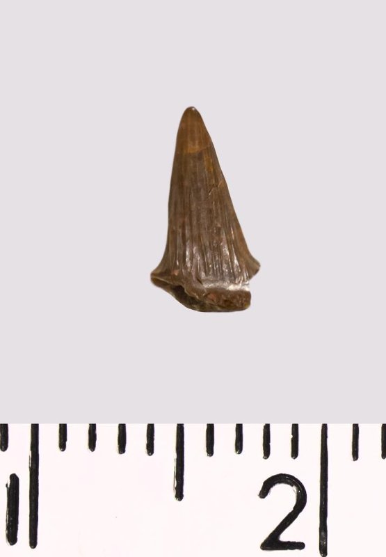 Зуб (фрагмент). Акула. Hybodus sp. Классификация: Хордовые Chordata, Позвоночные Vertebrata, Хрящевые рыбы Chondrichthyes, Пластиножаберные Elasmobranchii