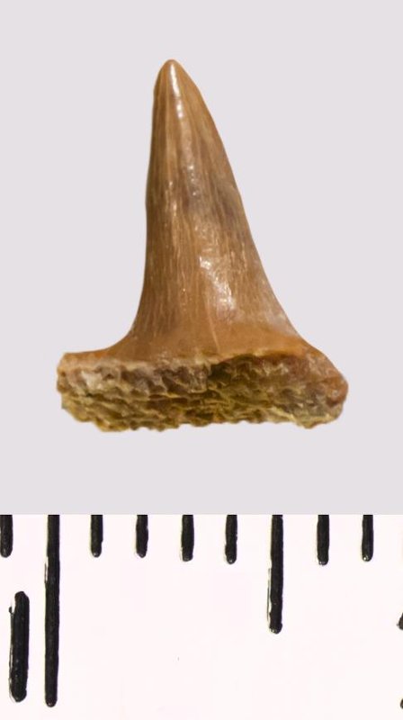 Зуб (фрагмент). Акула. Hybodus sp. Классификация: Хордовые Chordata, Позвоночные Vertebrata, Хрящевые рыбы Chondrichthyes, Пластиножаберные Elasmobranchii