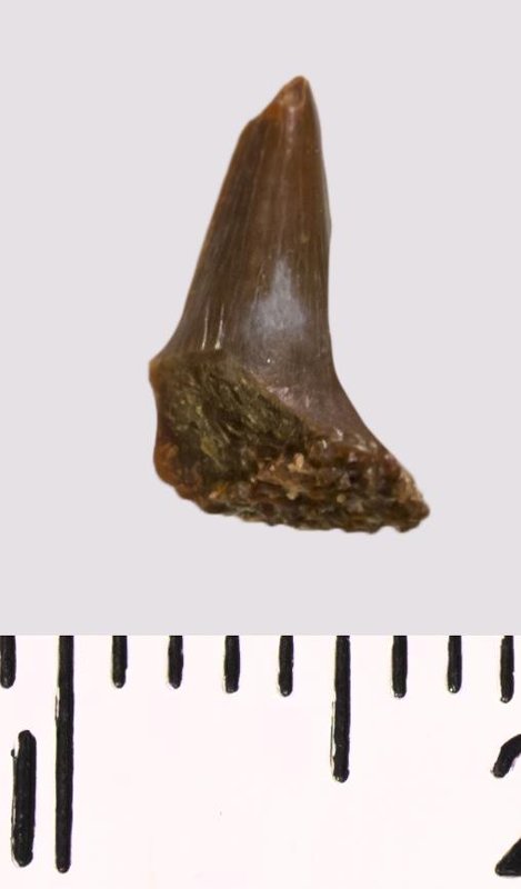 Зуб (фрагмент). Акула. Hybodus sp. Классификация: Хордовые Chordata, Позвоночные Vertebrata, Хрящевые рыбы Chondrichthyes, Пластиножаберные Elasmobranchii