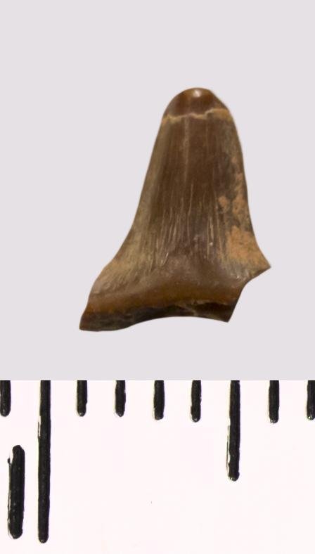 Зуб (фрагмент). Акула. Hybodus sp. Классификация: Хордовые Chordata, Позвоночные Vertebrata, Хрящевые рыбы Chondrichthyes, Пластиножаберные Elasmobranchii