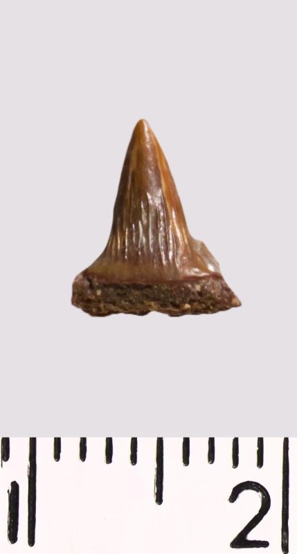 Зуб (фрагмент). Акула. Hybodus sp. Классификация: Хордовые Chordata, Позвоночные Vertebrata, Хрящевые рыбы Chondrichthyes, Пластиножаберные Elasmobranchii