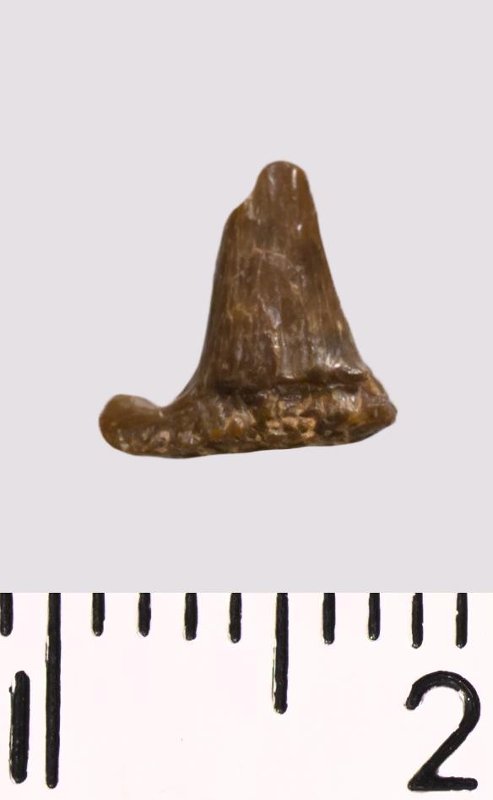 Зуб (фрагмент). Акула. Hybodus sp. Классификация: Хордовые Chordata, Позвоночные Vertebrata, Хрящевые рыбы Chondrichthyes, Пластиножаберные Elasmobranchii