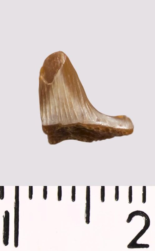 Зуб (фрагмент). Акула. Hybodus sp. Классификация: Хордовые Chordata, Позвоночные Vertebrata, Хрящевые рыбы Chondrichthyes, Пластиножаберные Elasmobranchii
