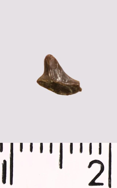 Зуб (фрагмент). Акула. Hybodus sp. Классификация: Хордовые Chordata, Позвоночные Vertebrata, Хрящевые рыбы Chondrichthyes, Пластиножаберные Elasmobranchii