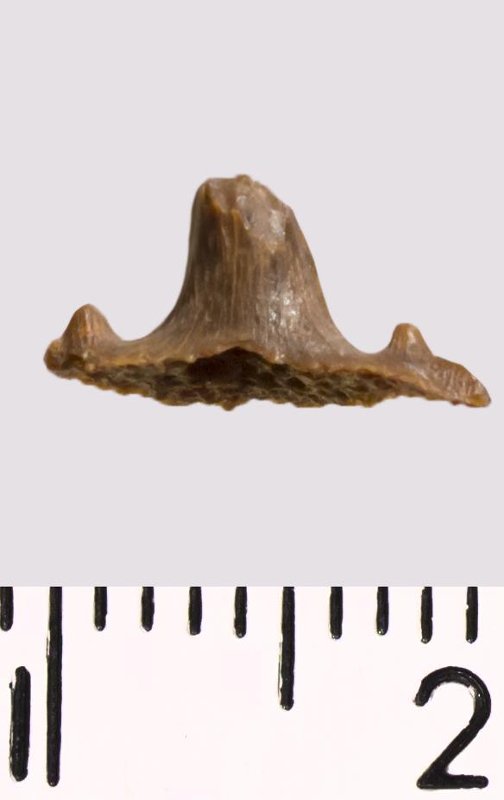 Зуб (фрагмент). Акула. Hybodus sp. Классификация: Хордовые Chordata, Позвоночные Vertebrata, Хрящевые рыбы Chondrichthyes, Пластиножаберные Elasmobranchii